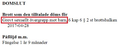 Den 25 juni år 2018 dömdes mannen, som enligt rättshandlingarna är tolk, för grovt sexuellt övergrepp mot barn till fängelse i ett år och nio månader. Detta efter att i april 2017 ha lurat med sig en tolvårig flicka från en busshållplats och förgripit sig på henne under knivhot.