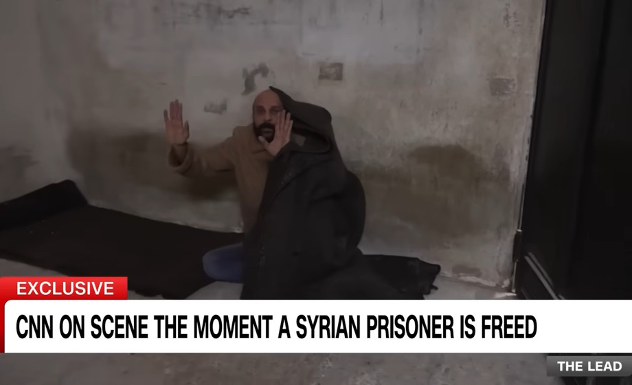 Och där, under en filt i en låst fängelsecell, påträffas en man. En av den störtade diktatorn Bashar al-Assads fångar, påstås det. CNN hjälper tillsammans med rebellkrigare honom ut ur fängelset.