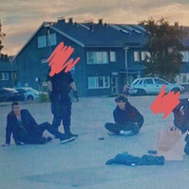 Misstänkta gärningsmän och poliser på platsen. Foto: Privat
