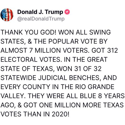 På söndagsmorgonen stod det klart att Trump fått 74 650 000 röster, vilket överskrider hans tidigare rekord på 74 224 000 röster i valet 2020.