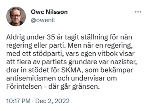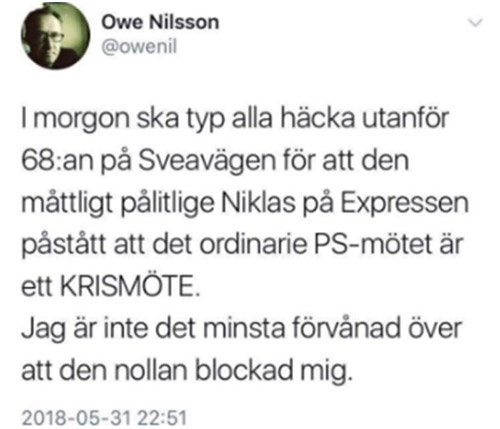 Strax efter midnatt natten till torsdagen twittrar Owe Nilsson: