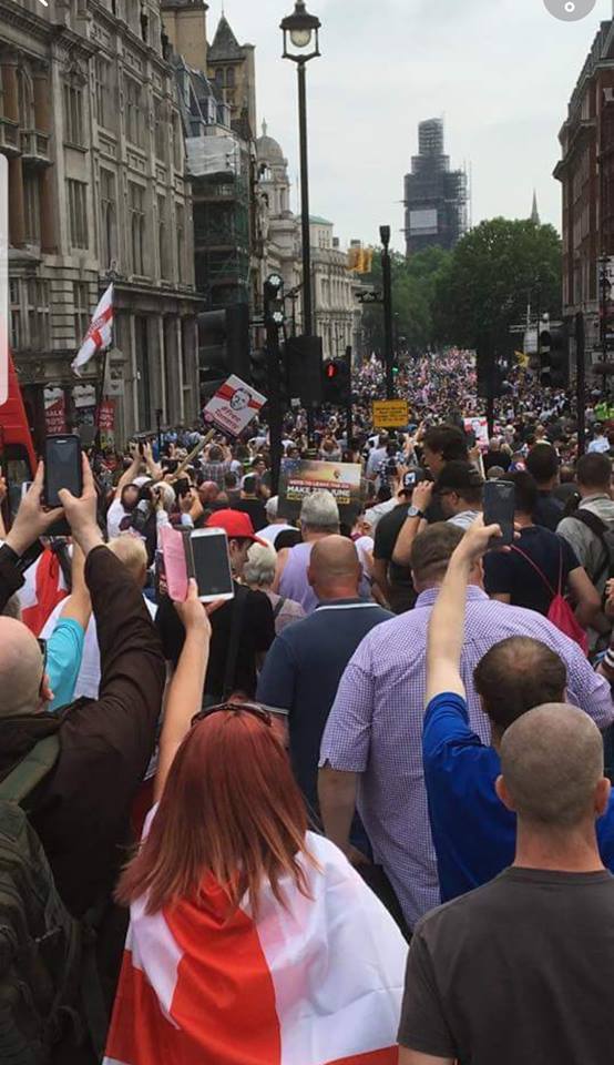 Demonstrationen. Foto: Tommy Robinsons Facebook