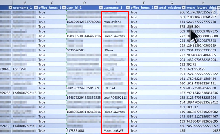 De flesta av de utpekade X-kontona har TV4 valt att blurra. Det är lite märkligt, tycker jag, om man tänker sig att de ingår i en trollfabrik. I sådana fall bör de offentliggöras. Något jag påpekat tidigare.