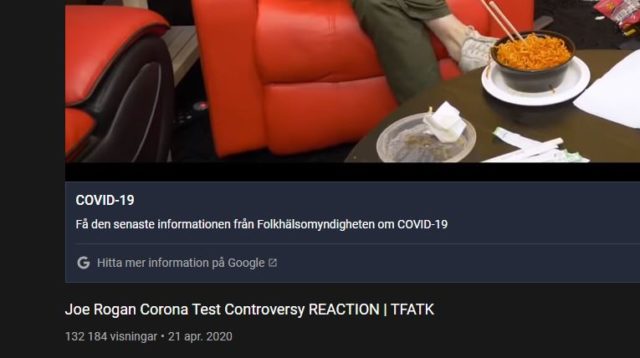 Under varje video som på något sätt handlar om pandemin har YouTube sedan några veckor tillbaka satt in en påtvingad länk till Folkhälsomyndigheten för plattformens svenska användare.