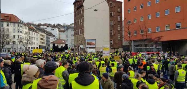Hundreds of German 'Yellow Vests' march in Stuttgart to protest against a draconian ban on older diesel vehicles that will hit poorer motorists hardest: https://t.co/hYlNR0uilX #giletsjaunes — Richard Wellings (@RichardWellings) February 4, 2019