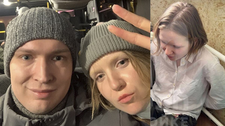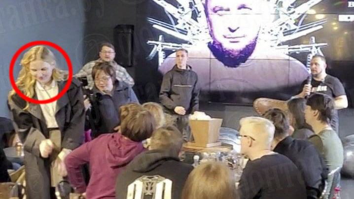 Ganska snart kan kvinnan som överlämnar statyetten pekas ut som den 26-åriga krigsmotståndaren Daria Trepova. Trepova greps 24 februari förra året tillsammans med sin man för att ha demonstrerat mot den ryska invasionen av Ukraina.