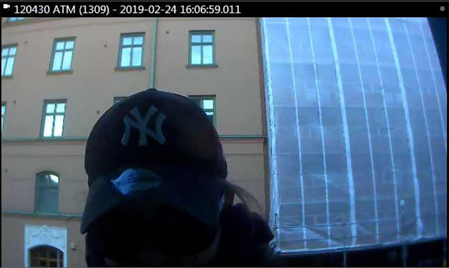 När polisen kontrollerar övervakningsbilderna denna gång, så har den som tar ut pengarna varit betydligt mer noggrann med att inte visa sitt ansikte för kameran. Kepsen är emellertid snarlik den från första bedrägeriet.