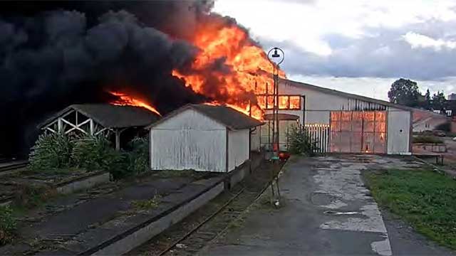 Byggnaden brann ned till grunden och en kraftledning brann av vilket lamslog tågtrafiken. De uppkomna skadorna har värderats till mellan 16 och 20 miljoner kronor.