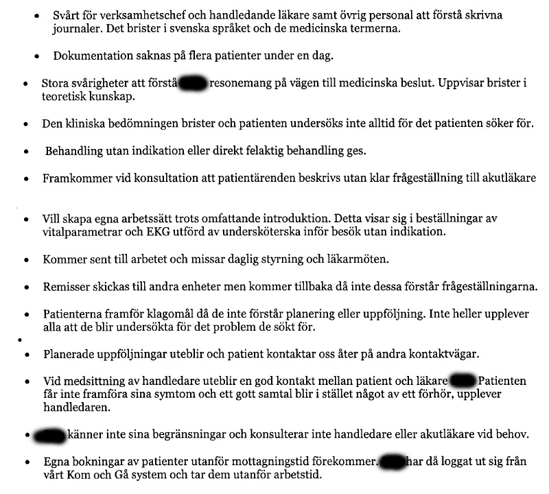 ”Sammanfattningsvis saknar denna läkare medicinsk kompetens och omdöme”, skriver verksamhetschefen i sin anmälan.