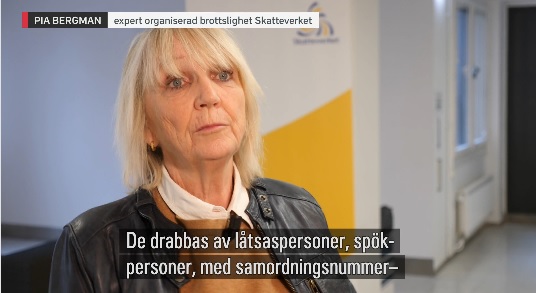 Pia Bergman hanterar organiserad brottslighet vid Skatteverket och hon berättar att de har problem med så kallade låtsaspersoner, spökpersoner och samordningsnummer. I november förra året framgick det att omkring hälften av de mer än 870 000 personerna som lever i Sverige med ett så kallat samordningsnummer inte har styrkt sin identitet. Polisen medgav vid tillfället att situationen är bortom kontroll.