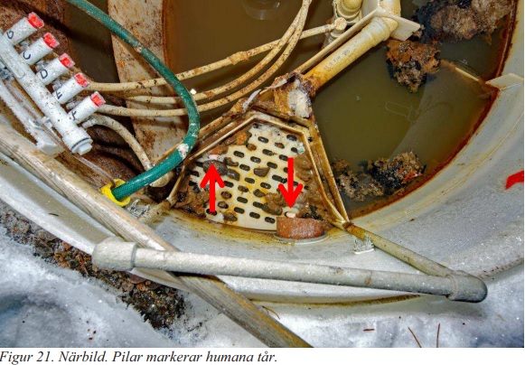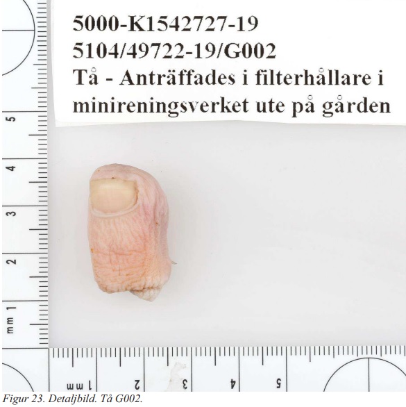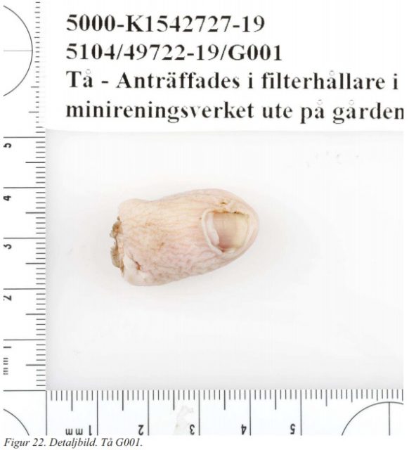 I samband med den tekniska undersökningen har polisen kontrollerat fastighetens VVS-system för att säkra spår. I ett minireningsverk påträffar brottsoffrets avklippta tår.