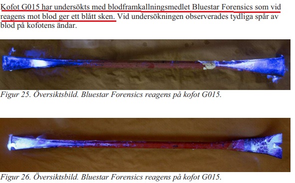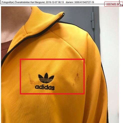 I samband med gripandet av Bergqvist påträffade polisen spår av blod på hans kläder, skor och ring.