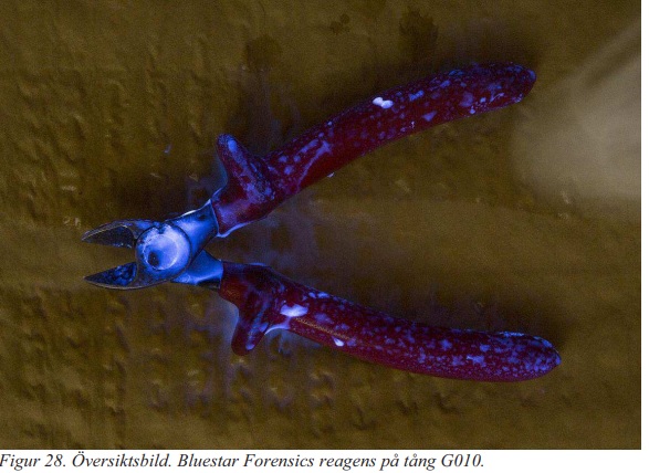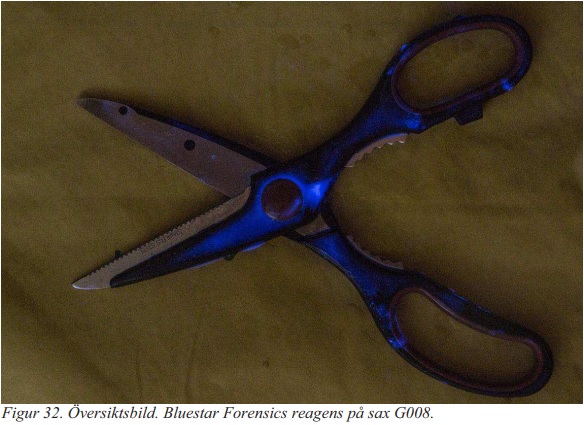Skadorna har orsakat akut blodförgiftning och sårskador i ändtarm och urinblåsa. Nedan utdrag ur polisens bilder på verktyg som påträffades i fastigheten med spår av blod.