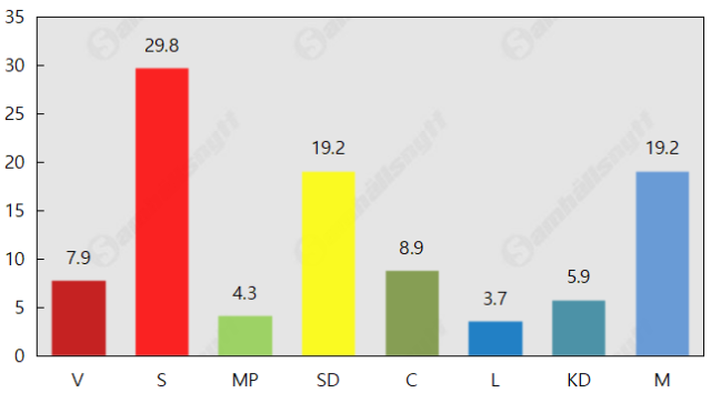 Mätningen från Novus bygger på 5 050 intervjuer mellan 15 oktober och 11 november. Deltagarna har fått frågan hur de skulle rösta om det var val till riksdagen i dag.