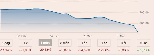 På en månad har Stockholmsbörsen därmed gått ner med nästan 30 procent.