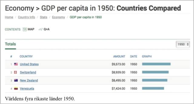 År 1950 hade Venezuela den fjärde högsta inkomsten per capita i världen, efter USA, Schweiz och Nya Zeeland. Så sent som 1980 kunde man skryta med att ha världens snabbast växande ekonomi i det 20 århundradet. År 2001 rankades Venezuela fortfarande som Latinamerikas rikaste land.