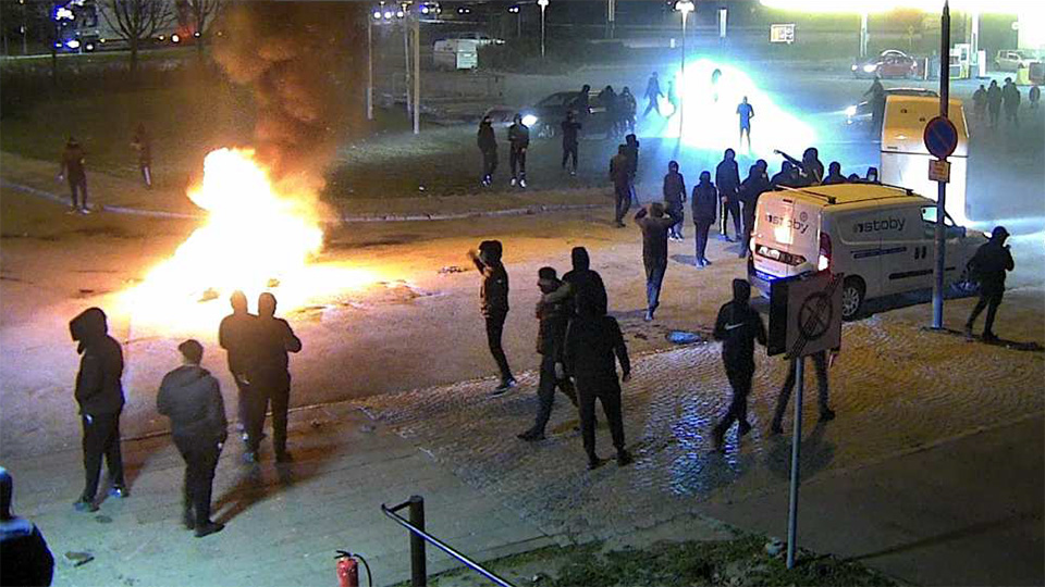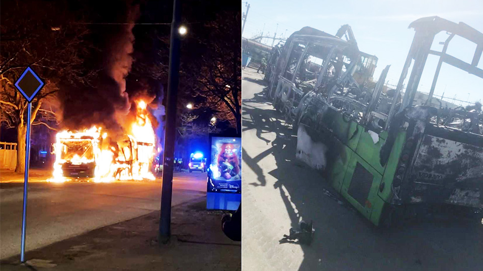 Under de islamistiska upplopp som under tre dygn skakade Malmöstadsdelen Rosengård stacks bland annat en buss med passagerare i, i brand.