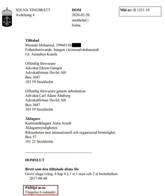 Rätten har med andra ord dömt till en lindrigare påföljd än vad som är föreskrivet för brottet eftersom Mohamed redan avtjänar ett fängelsestraff. Han döms till fängelse i sex månader.
