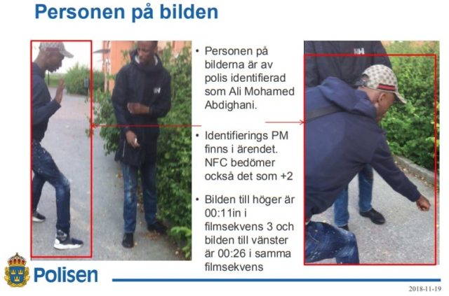 Polisen har identifierat två av gärningsmännen som 23-årige Mohamed Abdigahni Ali, även kallad Makelele/Makkan, och 24-årige Mustafa Mohamed, även kallad Musse. Båda personerna har starka kopplingar till Dödspatrullen.