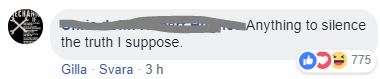 På Robinsons Facebook-sida är många upprörda över vad de ser som etablissemangets sätt att tysta en regimkritiker.