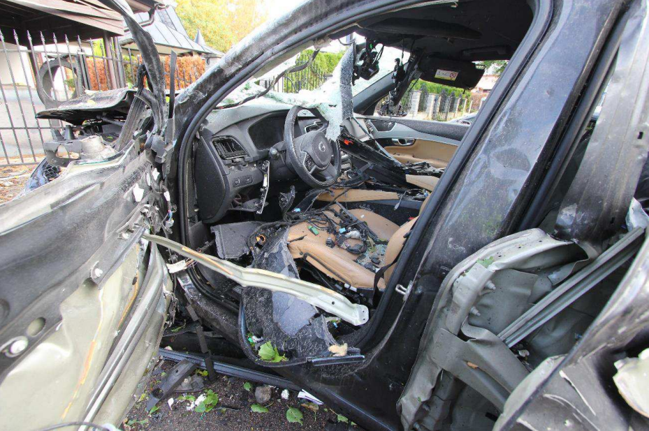 Polisens bilder från brottsplatsen visar skrotdelar över hela gatan utanför fastigheten. Nissan-bilen, som bomben placerats under, hade flugit iväg från parkeringsplatsen.