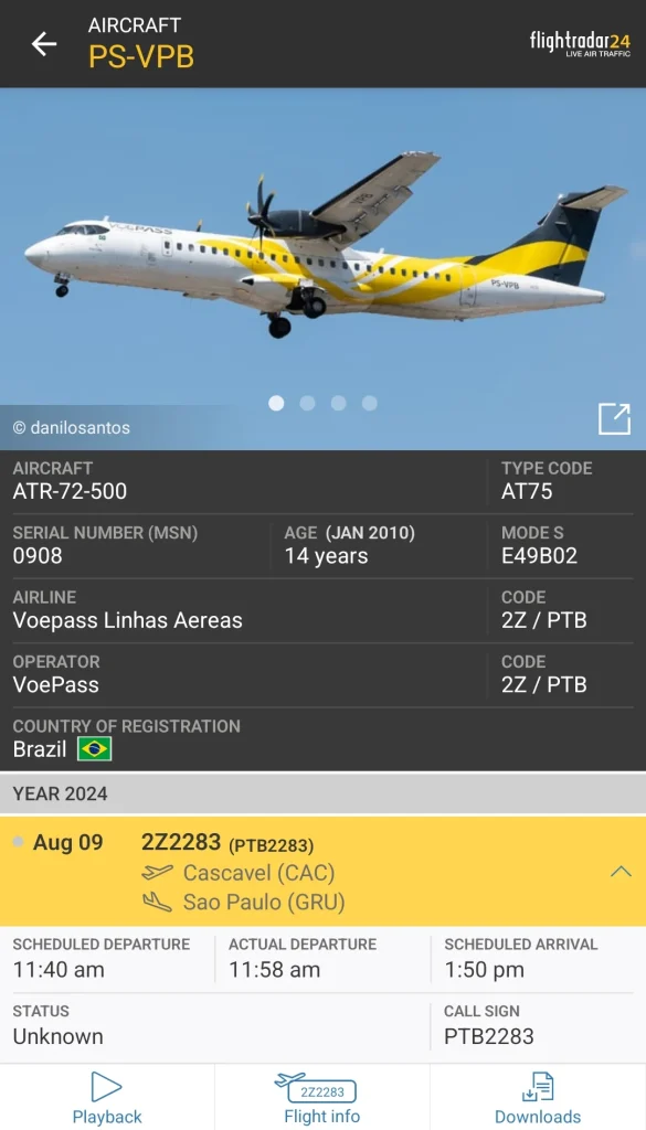BREAKING: Media reports that a Voepass ATR-72 has crashed in Sao Paulo, Brazil. Unverified video shows the aircraft spinning out of control while enroute to Guarulhos, Brazil. More details to follow. pic.twitter.com/1X0QVdGZ0Q— Breaking Aviation News & Videos (@aviationbrk) August 9, 2024