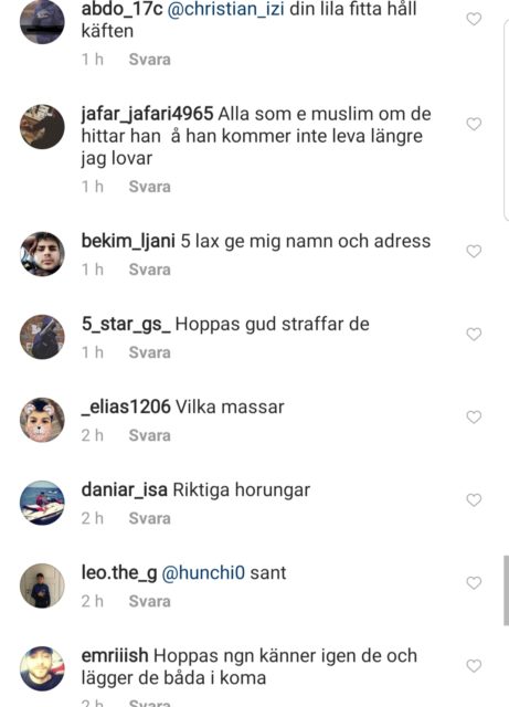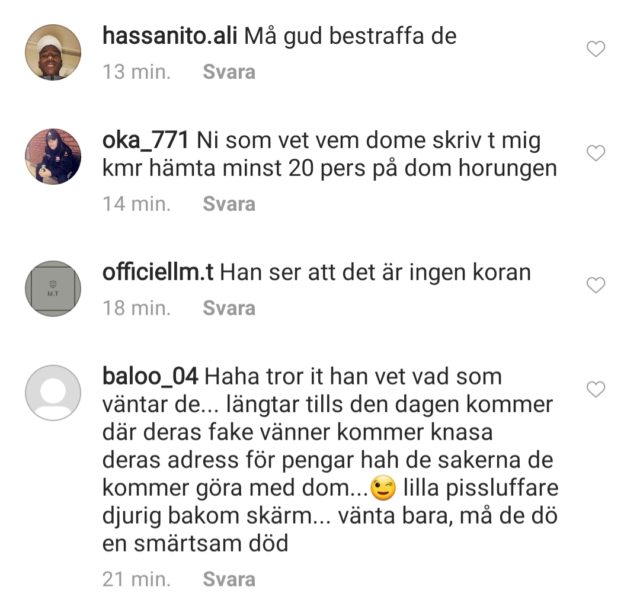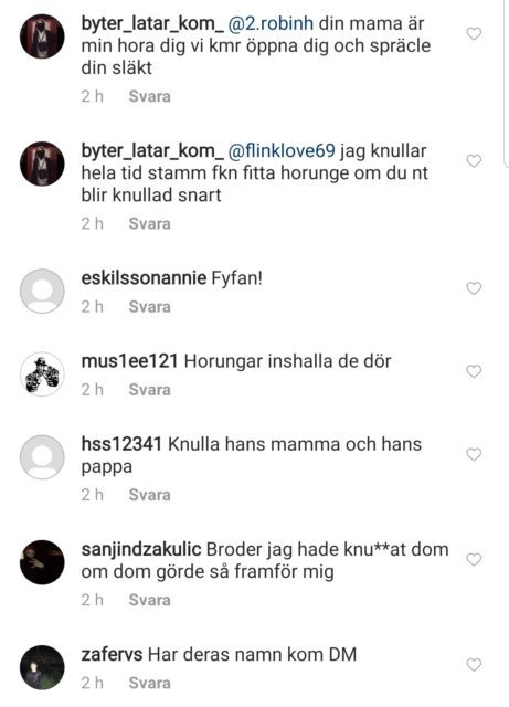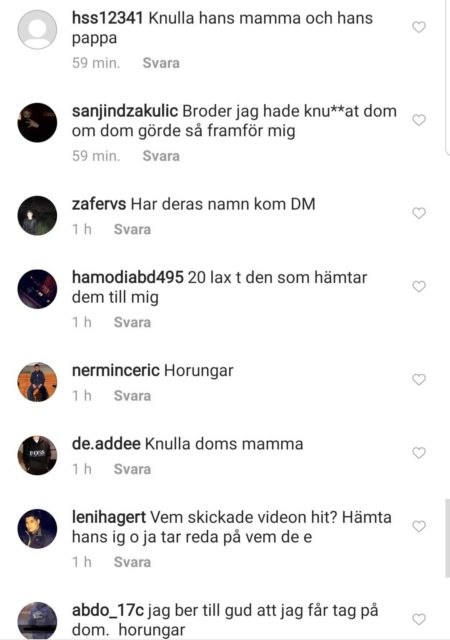 En kommentar erbjuder 20 000 kronor för att få tag i ungdomarna och det finns ytterligare bud kring 5000 – 10 000 kronor. Flera uppger att personerna och även deras föräldrar ska mördas och våldtas.