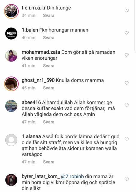 På fredagen började ett videoklipp spridas som visar hur en person kastar ut ett exemplar av Koranen från fönstret och säger ”hejdå” med ett skratt. En annan av ungdomarna äter upp en bit av en utriven koransida och får uppskattande kommentarer från de övriga.