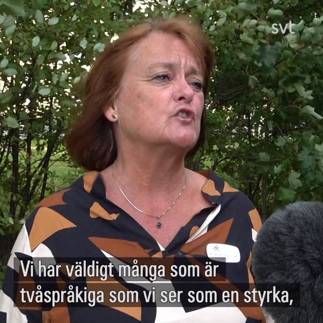 – Jag är inte nöjd med förskolor som vi har runt oss. De har inte lärare som pratar ren svenska, alla pratar jättedålig svenska, säger Manal Hamo till statstelevisionen.