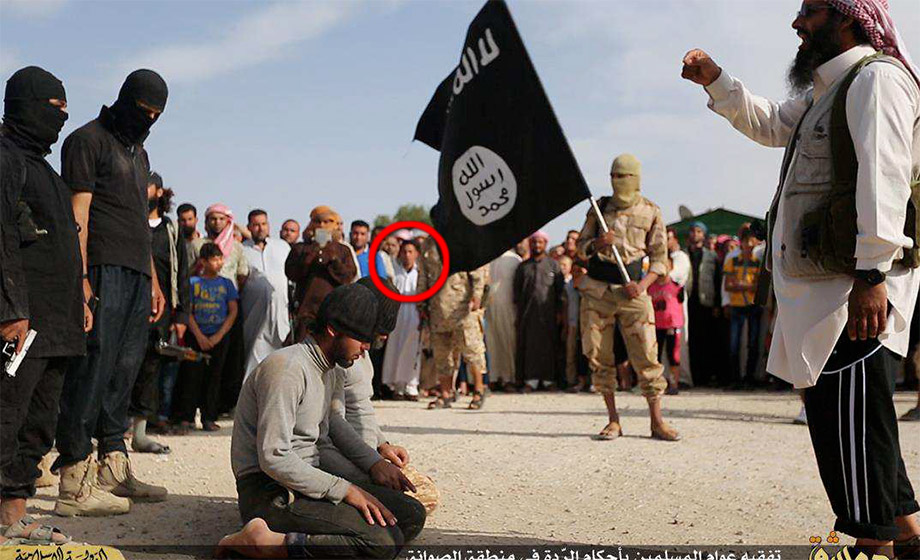 I en video från det avrättningslika dubbelmordet som terrorgruppen själv spridit i sociala medier pekas mannen ut som en av dem som står i bakgrunden i en klänningliknande klädsel. Han uppges enligt vittnen ha beordrat fram civila, inte minst barn, för att bevittna det ohyggliga blodbadet.