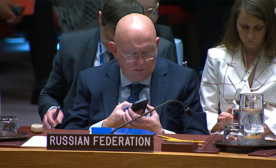 Föga förvånande håller Vasilij Nebensja, den ryske FN-representanten, inte med Zelenskyj. I sitt anförande i FN:s säkerhetsråd under tisdagen tillbakavisar han ukrainska antydningar om ryska krigsbrott.