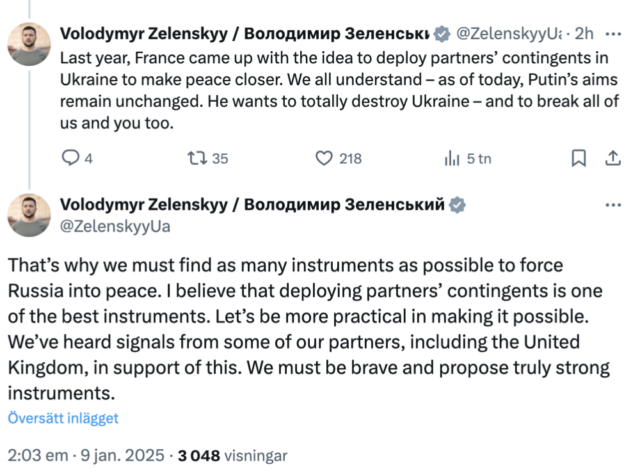Det är i ett långt inlägg på plattformen X, tidigare Twitter, som Zelenskyj argumenterar för att kriget går in i ett nytt kapitel med Donald Trumps intåg i Vita huset den 20 januari.